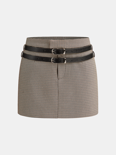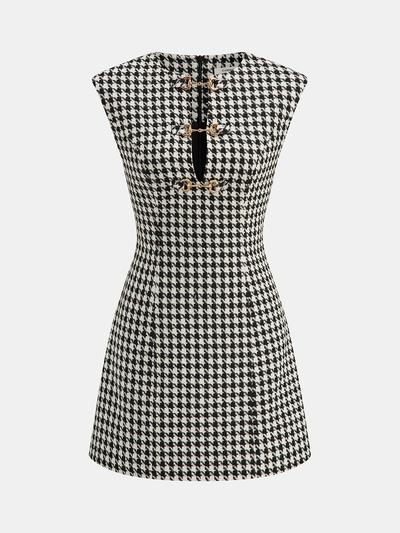 Houndstooth Tweed Mini Dress with Horsebit Detail