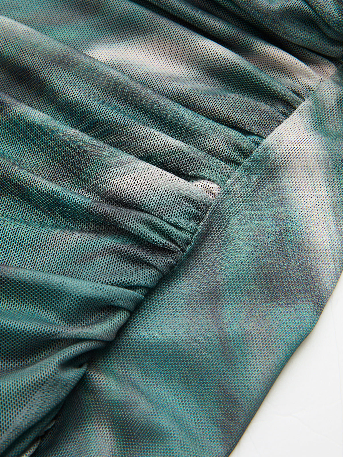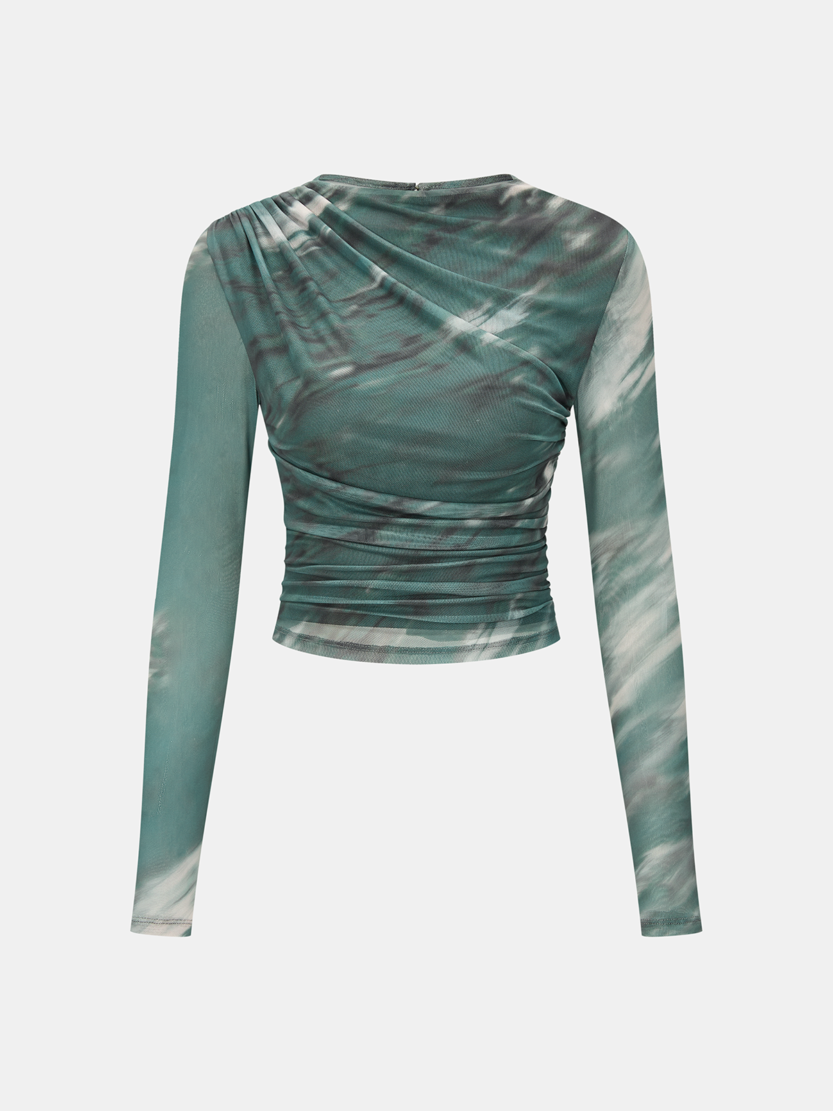 Tie-Dye Mesh Ruched Long-Sleeve Top