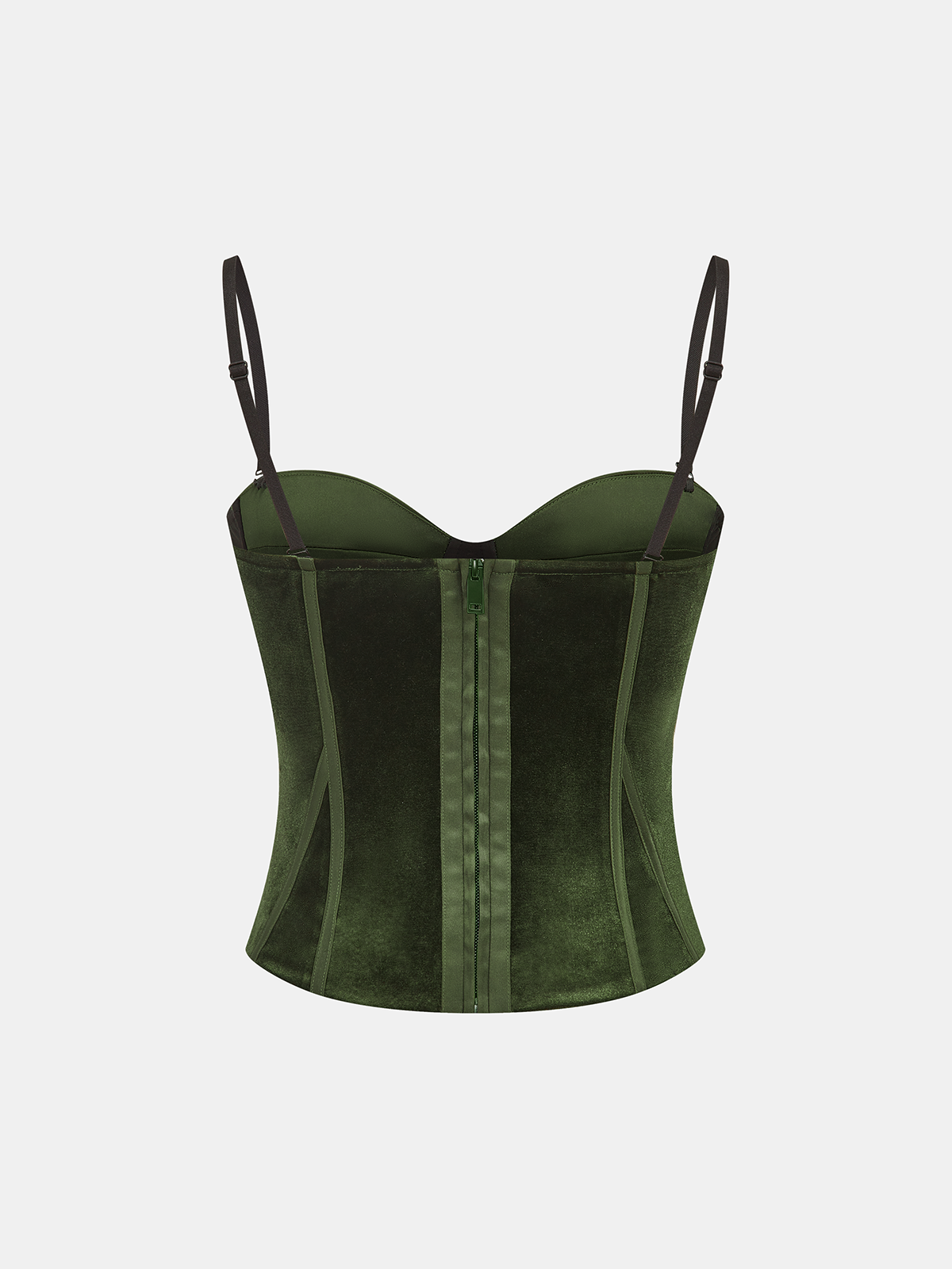 adjustable straps,cici select,clothing,coll:night_glam,coll:tops,coll:vintage_fabrics,corset,date,feminine,green,heart-shaped collar,in_six_month,invisible zipper,medium stretch,no,not_low_sales,oa251115067,party,patchwork,regular,regular fit,satin,sleeveless,tops,velvet,women