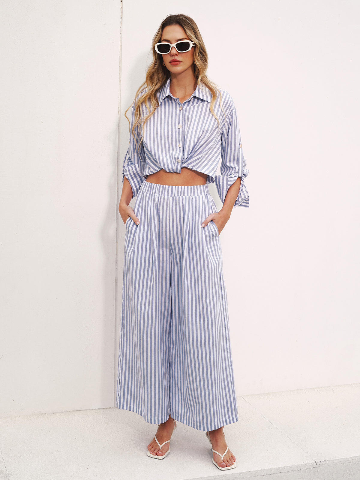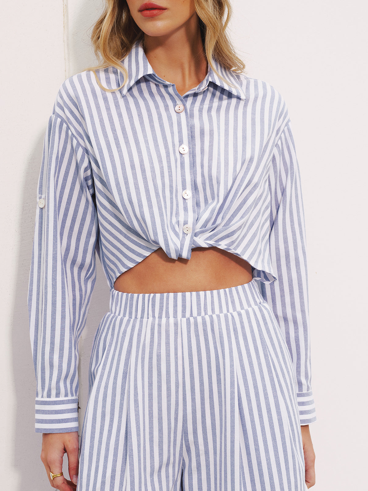 blue,casual,cathryn-d,cathryn-t,clothing,coll:bottoms,coll:dresses,coll:linen_cotton,coll:vacation,coll:weekend_getaway,collar,cotton blends,dresses,in_six_month,jumpsuits,long sleeve,minegence,no,non-stretch,not_low_sales,oa251226007,off-shore collective,regular,regular fit,ruched,stripe,vacation,women