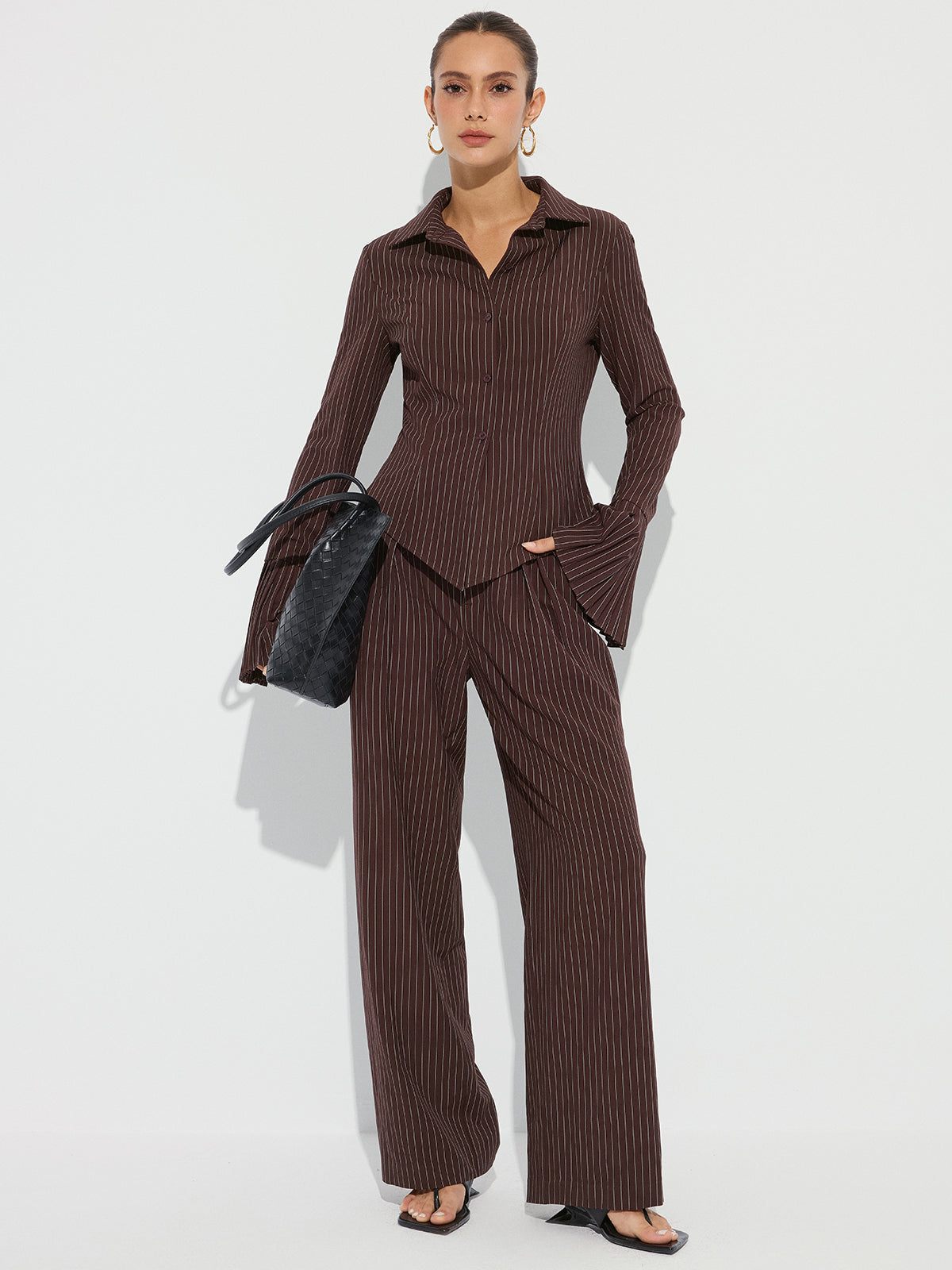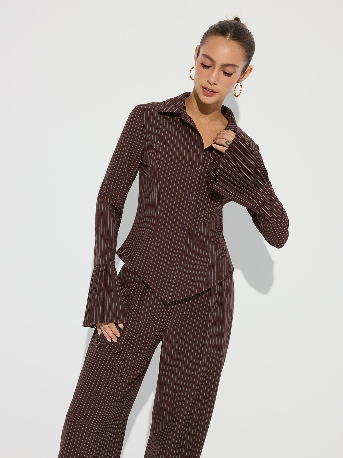 casual,clothing,coll:blouses_shirts,coll:matching_sets,coll:tops,collar,corpcore,dark brown,fall,in_six_month,inner sample,long sleeve,matching sets,minegence,no,not_low_sales,oa250825096,photo_model,regular,regular fit,shirts,slight stretch,spring,tops,winter,winter hues,women,woven fabric