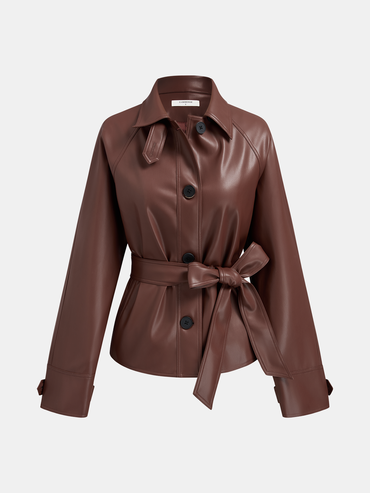 a-none,belted,brown,clothing,coll:jackets,coll:old_money,coll:outerwear,coll:tops,coll:trending,coll:vintage_fabrics,fall,faux leather,feminine,in_six_month,jackets,long sleeve,non-stretch,not_low_sales,oa251010087,outerwear,regular,regular fit,spring,warm,winter,winter hues,women