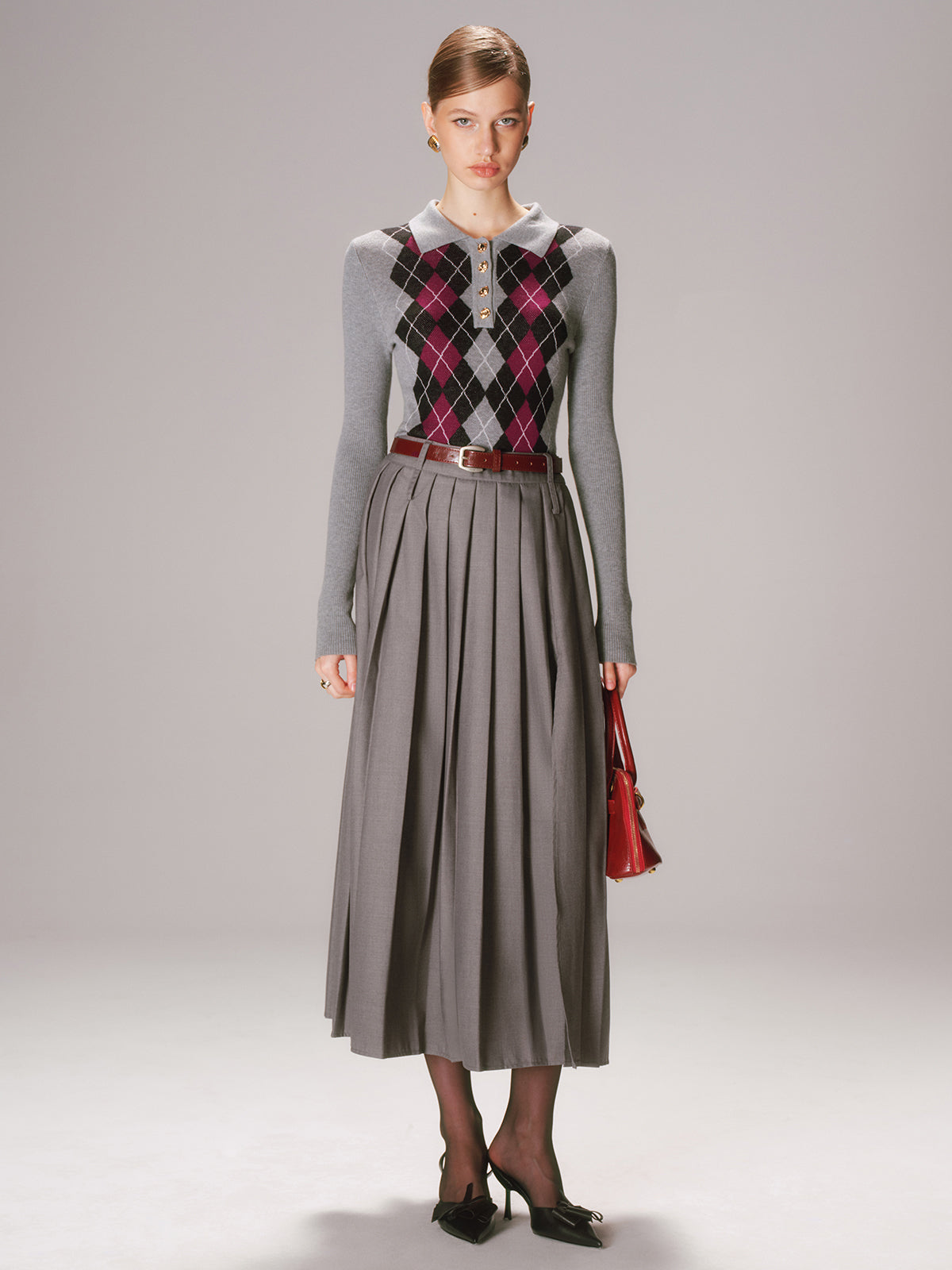 2‌5 christmas,aw pattern,casual,clothing,coll:knitwear,coll:plaids_polka,coll:sweater_tops,coll:sweaters_cardigans,coll:tops,coll:trending,date,fall,in_six_month,inner sample,knit,knit tops,light grey,medium stretch,minegence,not_low_sales,oa250926058,photo_model,plaid,regular,slim fit,sweaters & cardigans,winter,women