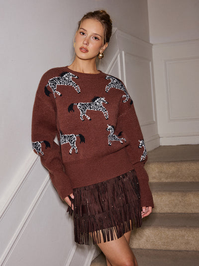 Zebra Pattern Knit Sweater