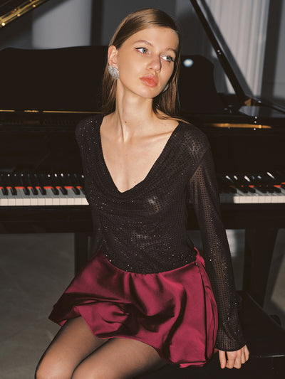 Cowl Neck Rhinestone Long Sleeve Top