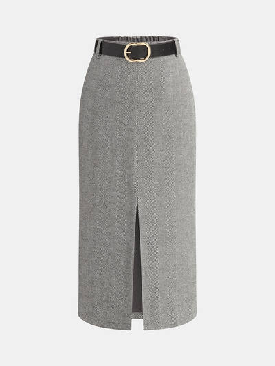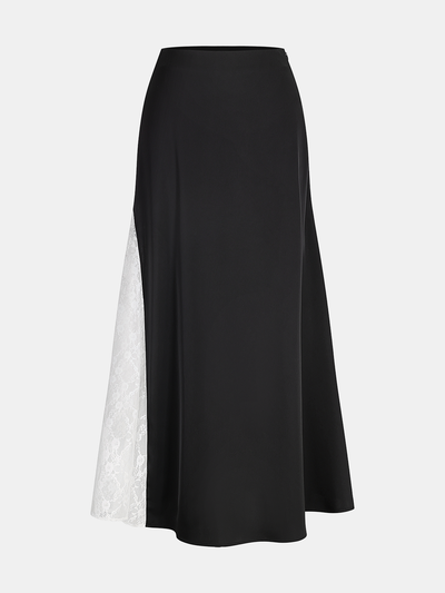 Crocodile PU Leather Panel Suede Effect Midi Skirt