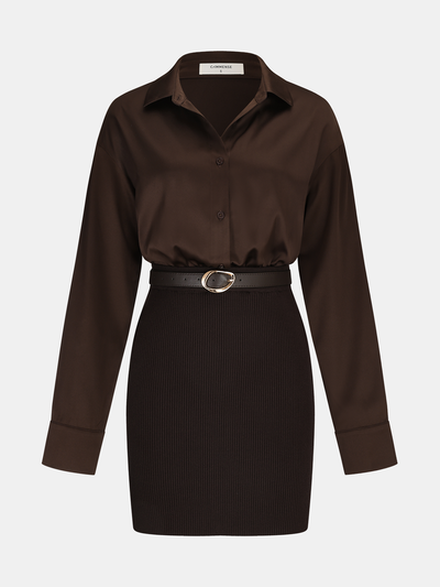 Belted Faux Leather Sleeveless Pleated Mini Dress