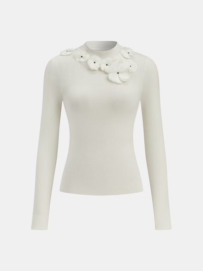 Metal Detail Mock Neck Puff Sleeve Sweater