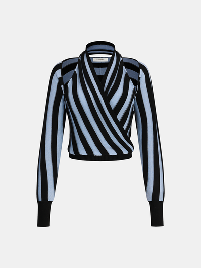 Wool Blend Cable Knit Draped Asymmetric Sweater