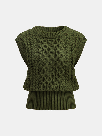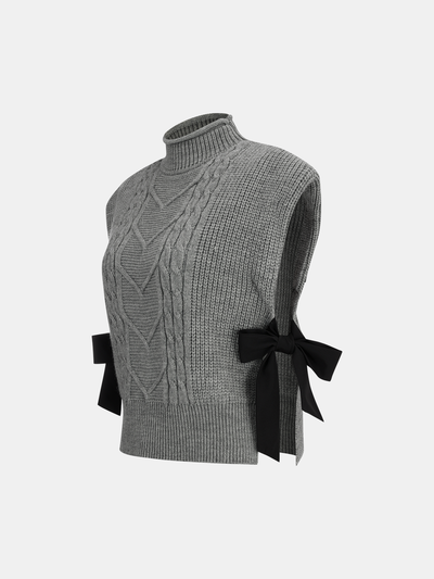 Wool Blend Mock Neck Bow Detail Cable Knit Vest