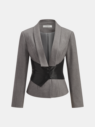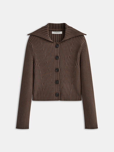Collared Metal Buckle Ribbed Cropped Cardigan