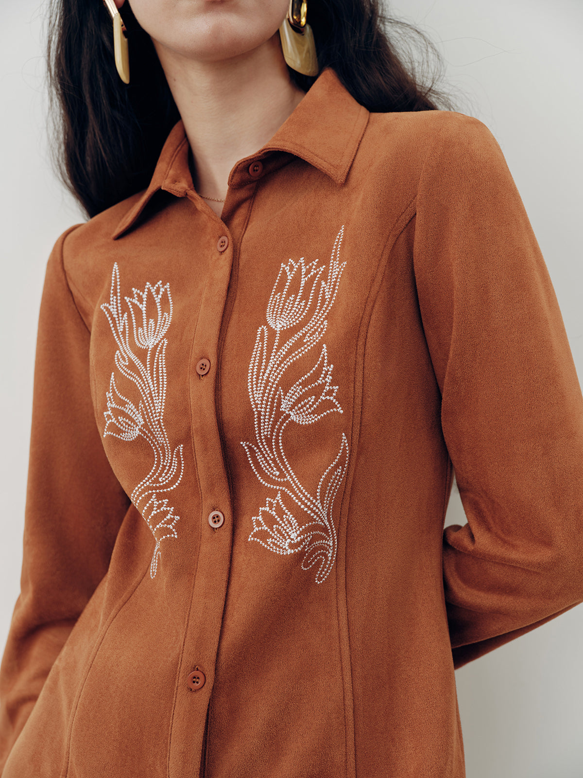 1688 online,aw pattern,bohemian,casual,clothing,coll:dresses,coll:trending,coll:vintage_fabrics,collar,corpcore,dresses,fall,in_six_month,light brown,long sleeve,minegence,no,non-stretch,not_low_sales,oa250901051,photo_model,regular,regular fit,short,suede,winter,women