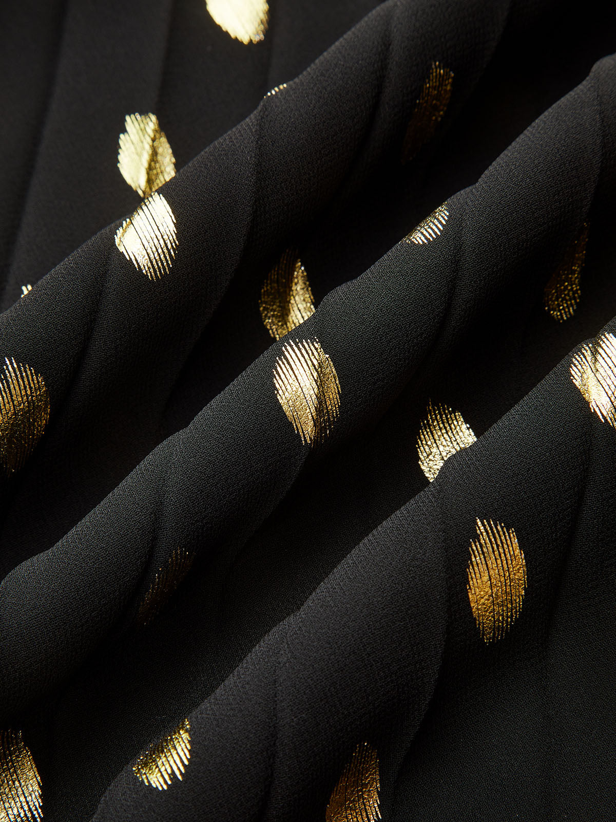 Long Sleeves Foil Spot Print A-Line Maxi Dress