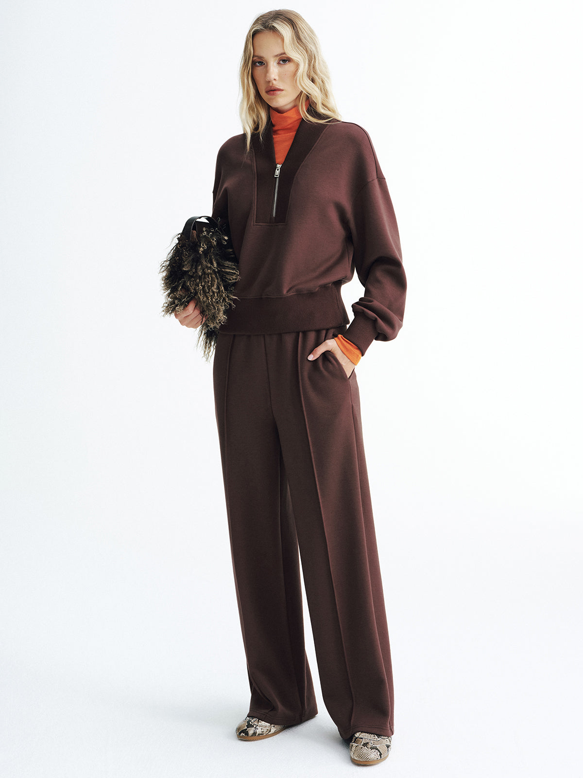a-none,casual,clothing,coll:matching_sets,coll:sweatshirts_hoodies,coll:tops,corpcore,dark brown,fall,in_six_month,inner sample,jersey,long sleeve,matching sets,minegence,no,not_low_sales,oa250829016,photo_model,regular,regular fit,slight stretch,spring,sweatshirts,tops,v-neck,warm,winter,women