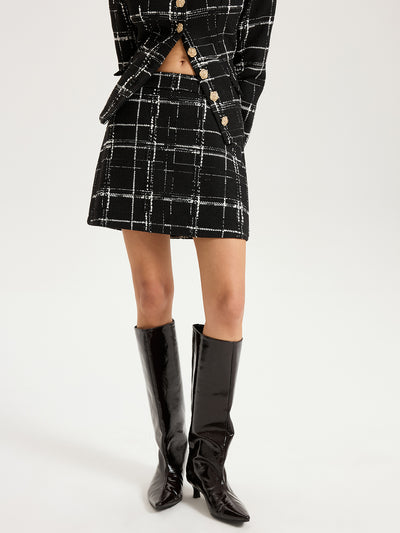 Mid-Waist Tweed Sequin Wide-Leg Pants