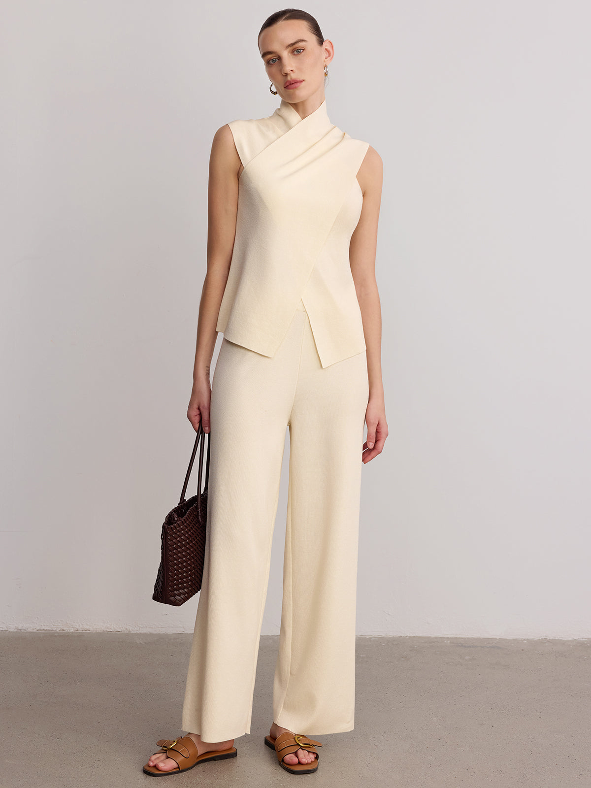 asymmetric,beige,casual,clothing,coll:bottoms,coll:matching_sets,coll:trending,coll:vacation,coll:weekend_getaway,cross wrap,elastic waistband,high stretch,in_six_month,knit,minegence,mwt,mwt-ss,not_low_sales,oa251107084,pant sets,photo_model,regular,sets,shift,summer hues,vacation,women