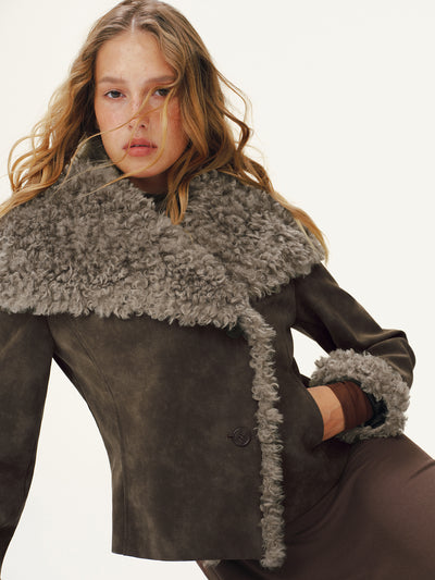 Too Blessed Sherpa Lined Shearling Leather Flight Jacket