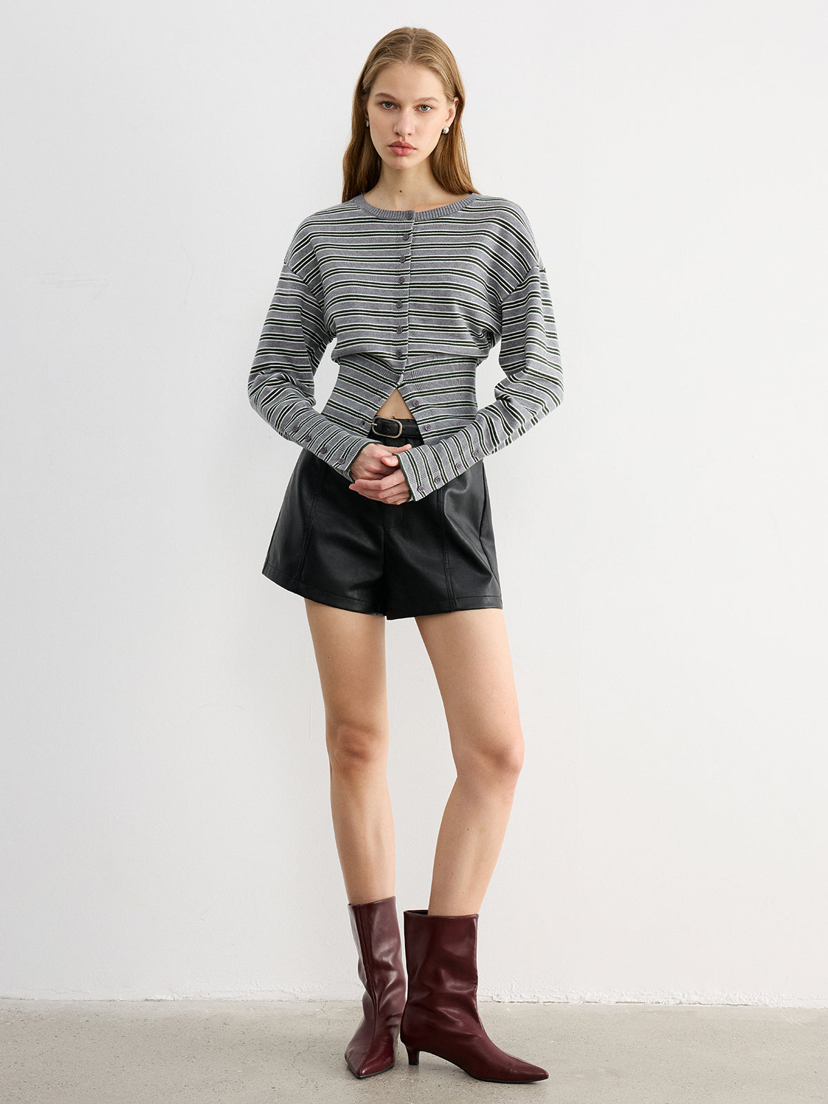 Waist Cinched Stripe Cardigan
