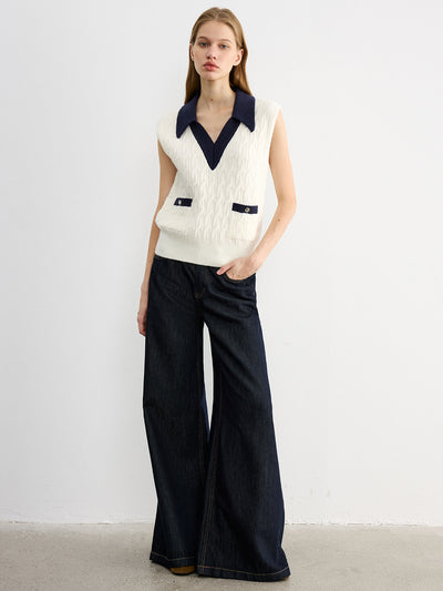 Horse-Pattern Cap Sleeve Turtleneck Sweater Vest