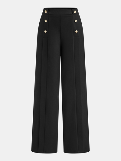 Metal Detail Mid-Waist Pleated Wide-Leg Pants
