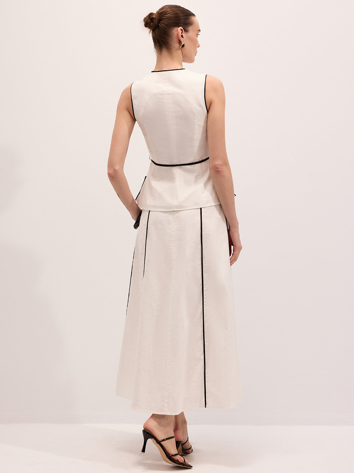 Cotton Linen Contrast Piping Top & Maxi Skirt Set