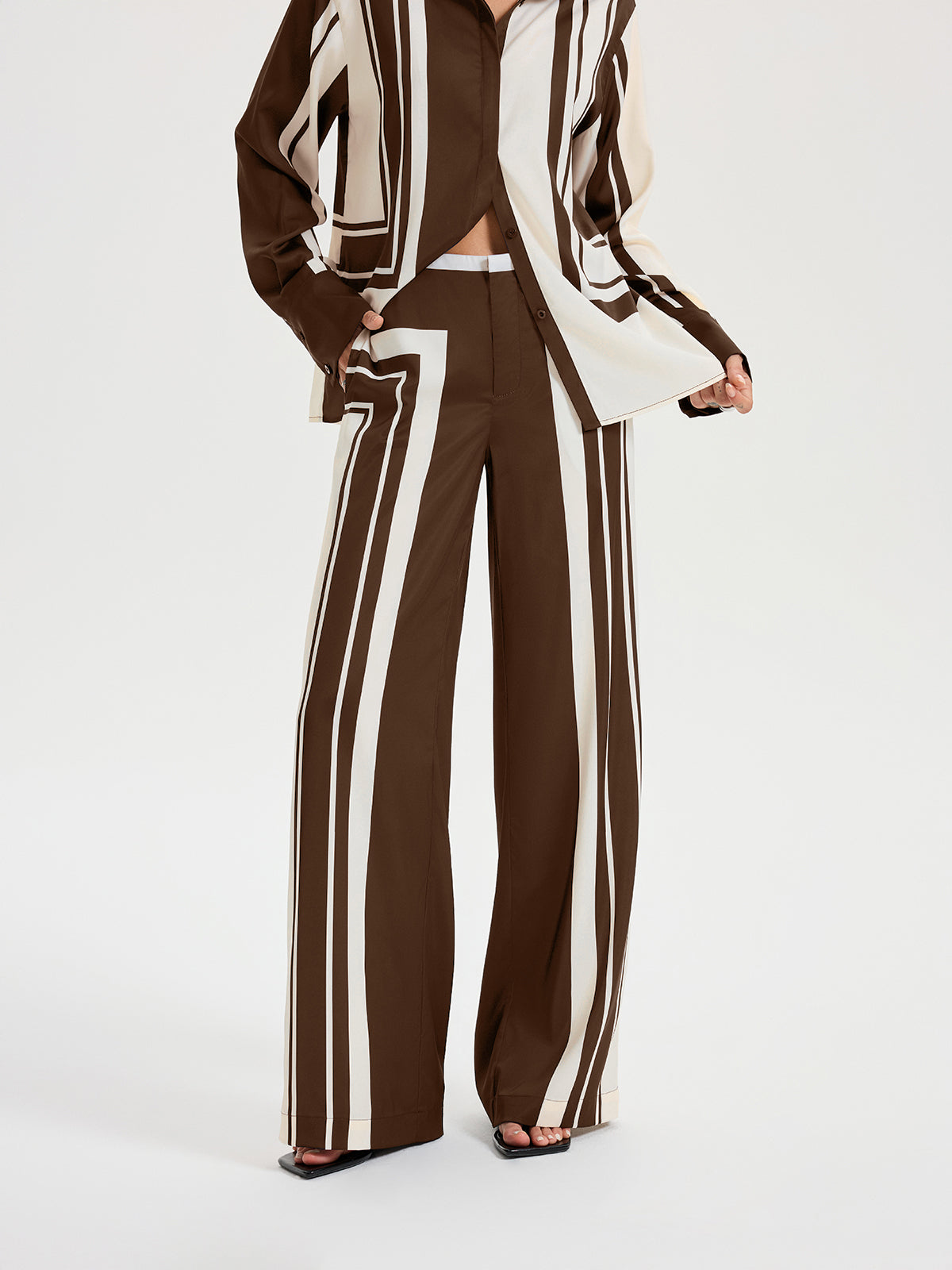 a-none,aw pattern,blackandwhite,bottoms,clothing,coll:bottoms,coll:matching_sets,coll:pants,coll:trending,contrast piping / trim,dark brown,fall,in_six_month,inner sample,long pants,matching sets,mid waist,minegence,no,non-stretch,not_low_sales,oa250813020,pants,photo_model,regular,shift,spring,women,woven fabric