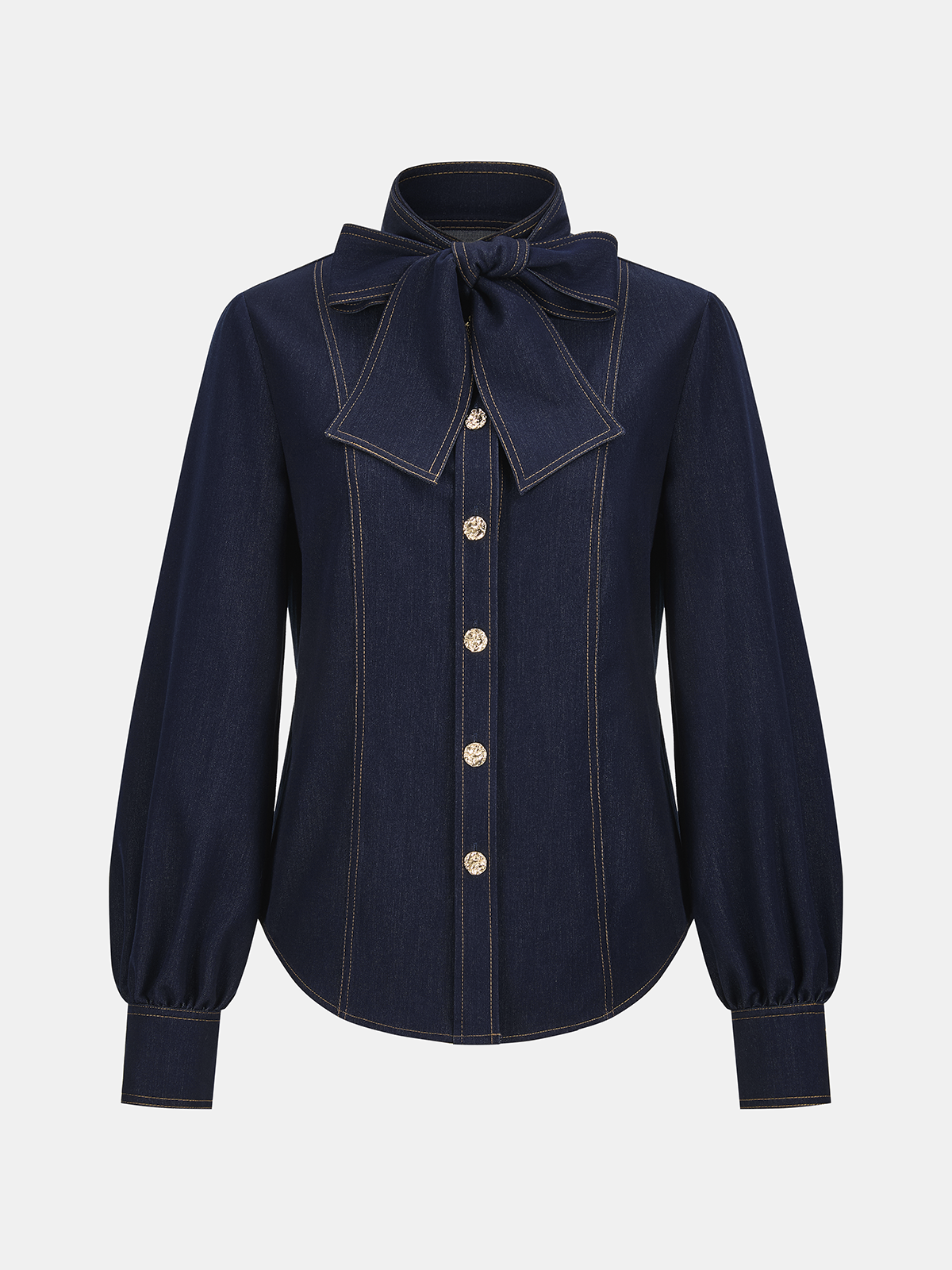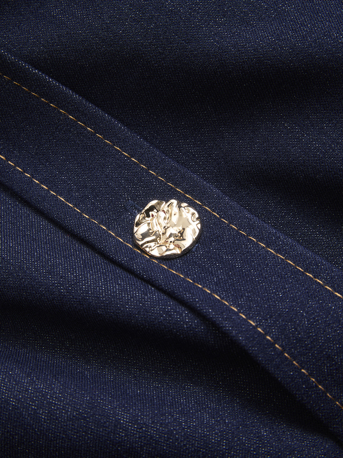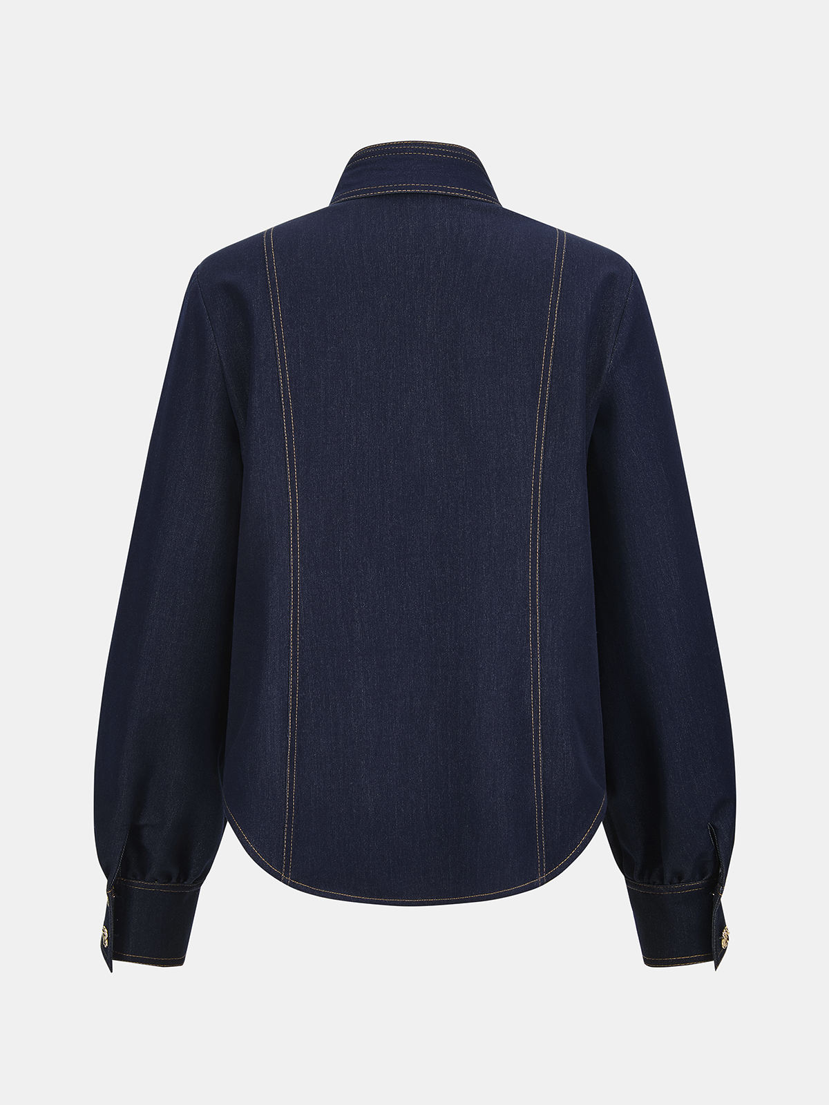 a-none,cici select,clothing,coll:blouses_shirts,coll:denim,coll:tops,denim,fall,in_six_month,long sleeve,metal detail,minegence,navy,no,not_low_sales,oa251031085,regular,shift,shirts,slight stretch,spring,stand collar,tops,winter,women