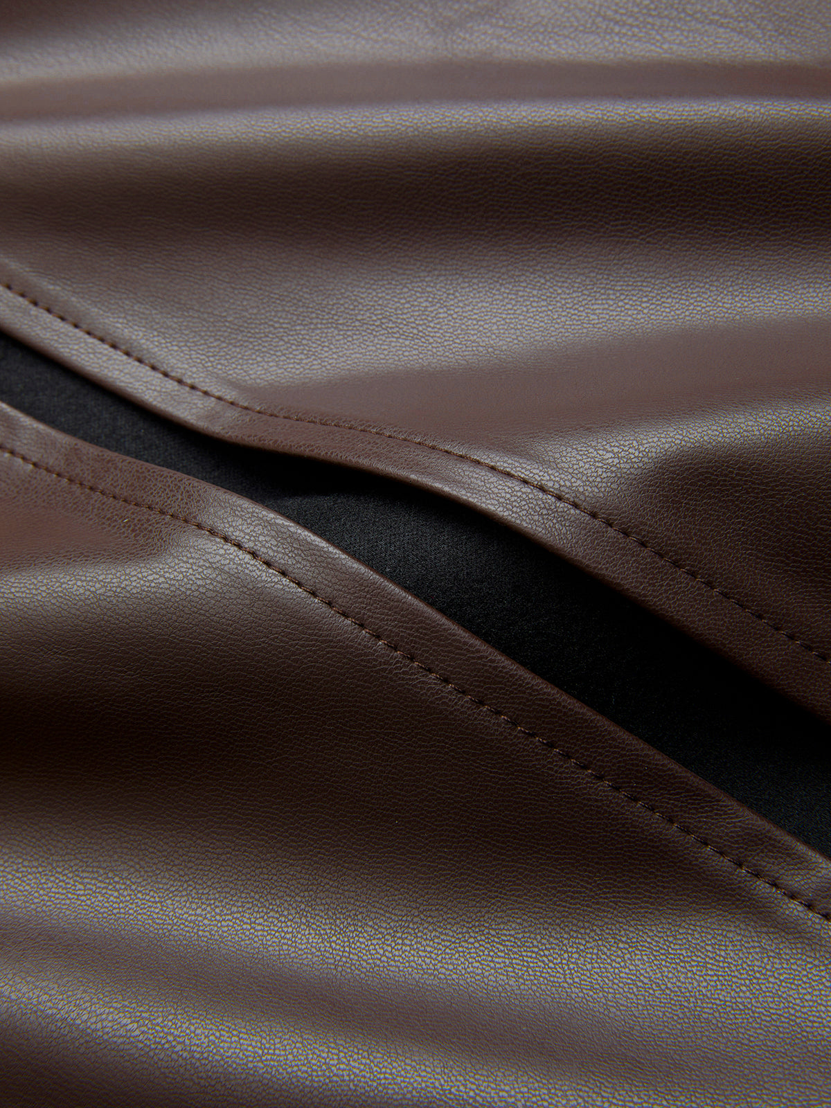 basic - fabric,bottoms,casual,clothing,coll:bottoms,coll:old_money,coll:skirts,coll:vintage_fabrics,dark brown,date,fall,faux leather,in_six_month,invisible zipper,mid waist,midi,minegence,no,non-stretch,not_low_sales,oa251112053,regular,regular fit,skirts,winter,winter hues,women