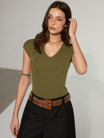 Ruffle V-Neck Puff Sleeve Tencel Blouse