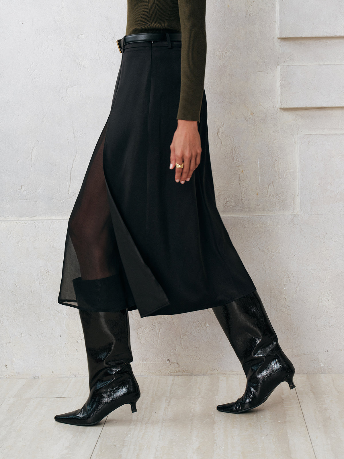 Sheer Slit Midi Skirt without Belt