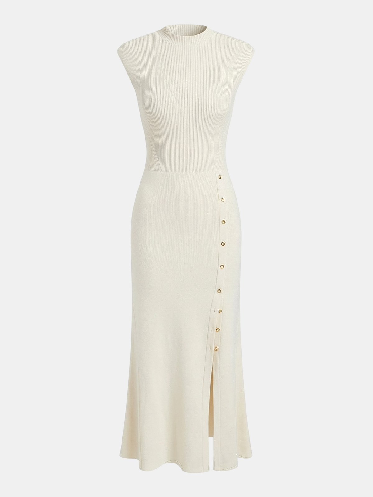 Button Detail Cap Sleeve Rib Knit Maxi Dress