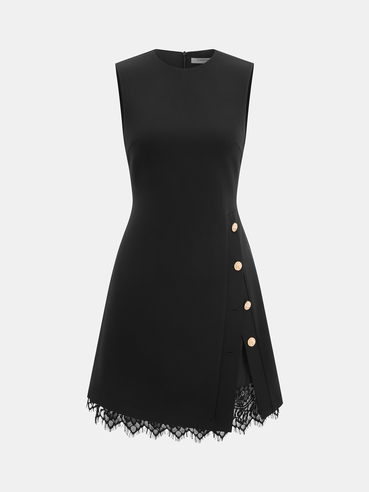 asymmetric,black,clothing,coll:dresses,corpcore,crew neck,date,dresses,feminine,in_six_month,invisible zipper,lace,metal detail,mwt,mwt-ss,no,not_low_sales,oa251209008,regular fit,short,sleeveless,slight stretch,thin,women,woven fabric