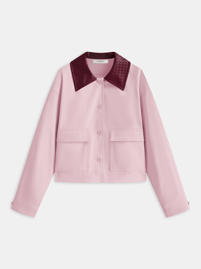 casual,clothing,coll:jackets,coll:outerwear,coll:tops,coll:trending,coll:vintage_fabrics,corpcore,fall,faux leather,in_six_month,inner sample,jackets,long sleeve,minegence,non-stretch,not_low_sales,oa250826040,outerwear,patchwork,pink,regular,regular fit,short top,winter,women,woven fabric
