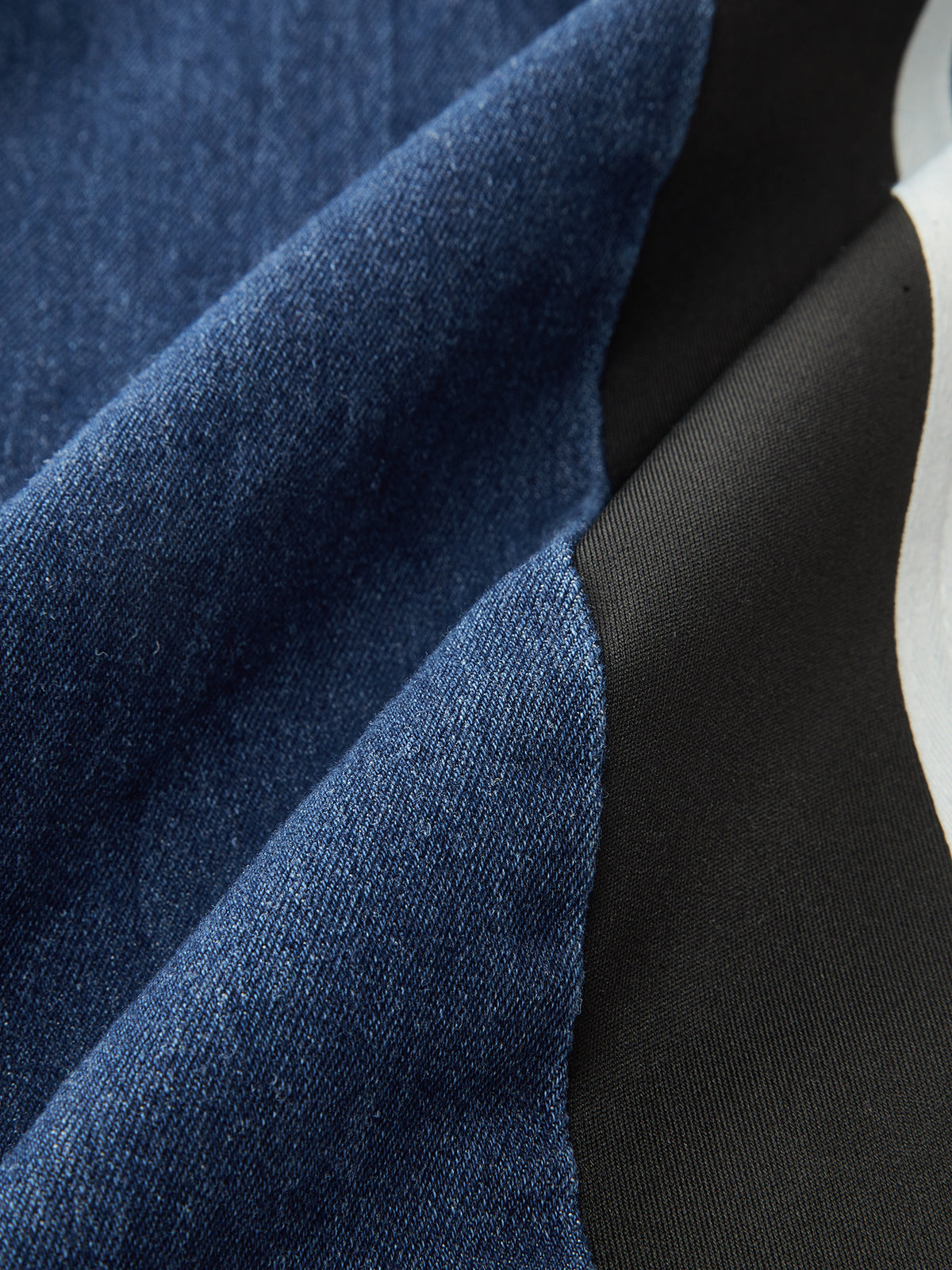 - Composition: 80% Polyester, 15% Cotton, 5% Elastane
